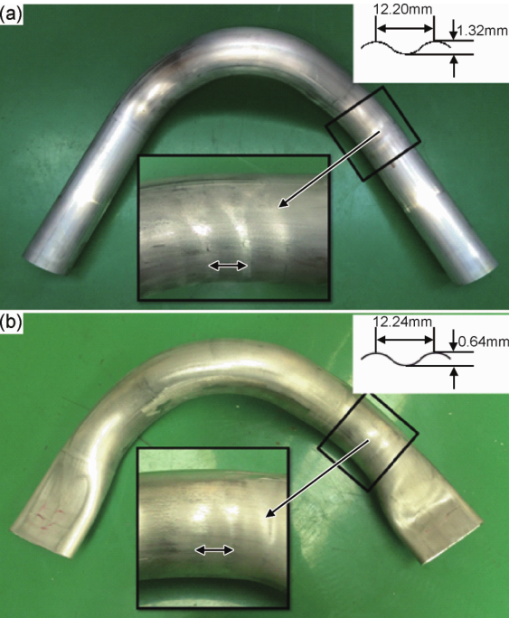 寇永樂等研究人員則針對CNC彎曲中截面畸變的影響因素進行了研究,指出增加芯頭個數和芯棒伸出量、壓塊無潤滑有利于減小彎管的截面畸變。CNC彎曲中另一個典型的缺陷是起皺,不僅影響其成形性能,而且影響美觀,所以在CNC彎曲時要盡量避免。