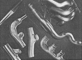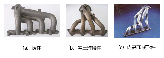 目前國內(nèi)外生產(chǎn)排氣岐管的方法主要有整體鑄造成形、沖壓組焊成形、內(nèi)高壓成形出枝杈管然后跟管件連接成形。各種工藝成形的排氣管件如圖 1-9。