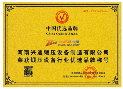 興迪源機械榮獲”鍛壓設備行業優選品牌”