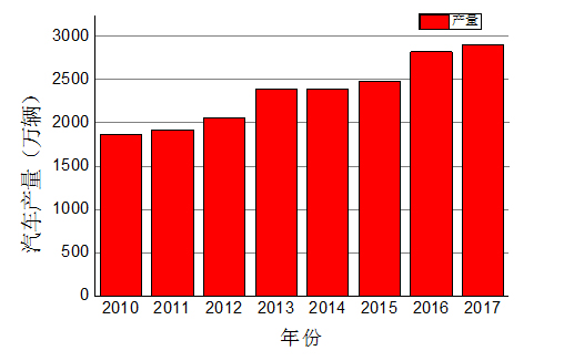 近8年國(guó)內(nèi)的汽車產(chǎn)量變化如圖1所示,呈現(xiàn)逐漸遞增的趨勢(shì),從近兩年來看國(guó)內(nèi)汽車產(chǎn)量增速?gòu)?016年的14.5%下降到2017年的3.2%,增長(zhǎng)速度明顯趨緩。