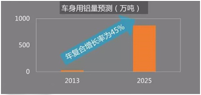 據(jù)Front&Sullivan分析,到2017年,輕量化汽車材料市場(chǎng)有望達(dá)到953.4億美元。并且?guī)熃沅X業(yè)協(xié)會(huì)的報(bào)告指出,汽車的自重每減少10%,燃油的消耗可降低6~8%。現(xiàn)代汽車自身質(zhì)量同過去相比減輕了20~26%,預(yù)計(jì)在未來的10年內(nèi),轎車自身質(zhì)量還將繼續(xù)減輕20%。