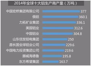 圖12:2014年全球主要企業(yè)的鋁產(chǎn)量