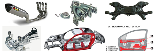 威特牌自行車車架異形管;采用維柴、康明思發(fā)動(dòng)機(jī)的汽車排氣系統(tǒng)異形管及加水口;比亞迪汽車安全構(gòu)件;宇通汽車座椅框架;大眾車型的MQB懸架臂和A+構(gòu)懸架臂及PQ46底盤橫梁;通用車型的D2XX副車架延伸架的橫梁和懸架臂;長(zhǎng)城汽車橫梁;農(nóng)用水泵殼體零件。