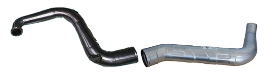 2016年中國(guó)基本型乘用車(轎車)產(chǎn)量為2803萬輛,按照每輛乘用車每種零件使用一個(gè),需要7個(gè)相關(guān)零件,總數(shù)可達(dá)19621萬個(gè)。現(xiàn)階段使用液壓成形技術(shù)生產(chǎn)的排氣系統(tǒng)遠(yuǎn)未達(dá)到10%,按照計(jì)算預(yù)期市場(chǎng)額度17659萬個(gè)。以2017年銷量最高的豐田卡羅拉為例,每套排氣系統(tǒng)管件的市場(chǎng)價(jià)格約為1000元,潛在市場(chǎng)價(jià)值可達(dá)1766億。如果包含其他重卡等車型,市場(chǎng)潛力更大。如圖19和20所示為排氣系統(tǒng)中冷管和排氣歧管傳統(tǒng)成形方式和內(nèi)高壓成形對(duì)比。