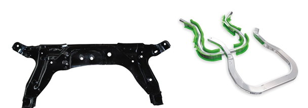 (2)減少零件和模具數(shù)量,降低模具費(fèi)用。內(nèi)高成形件通常僅需要一套模具,而沖壓件大多需要多套模具。副車架零件由6個(gè)減少到1個(gè),散熱器支架零件由17個(gè)減少到10個(gè)。