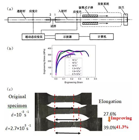 (c)高應(yīng)變速率拉伸和準(zhǔn)靜態(tài)拉伸延伸率對(duì)比