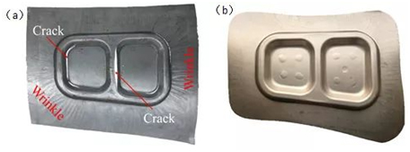 圖29:5A06復(fù)雜薄壁口框零件的落壓成形和沖擊液壓成形對(duì)比