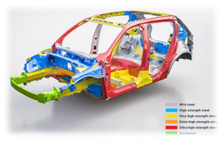 如圖5所示,汽車車身用材料主要有低碳鋼、高強(qiáng)鋼、超高強(qiáng)鋼和鋁合金等。