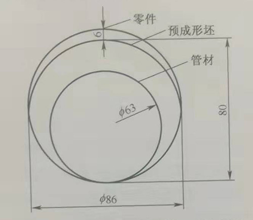 空心曲軸如圖2-45(a)所示,長度為220mm,管材直徑為63mm,壁厚為3mm,兩個(gè)曲拐的形狀和大小一致,兩個(gè)曲拐的直徑為86mm。