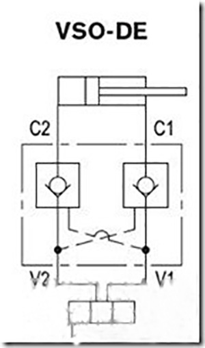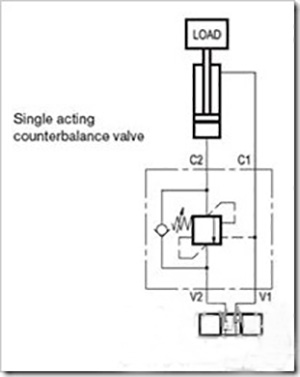 對于成對的液壓缸而言,絕對不能使用液控單向閥:因為先導壓力首先開啟輕負載的閥而將所有負載加載在另一個閥,造成壓力偏高和油缸故障。