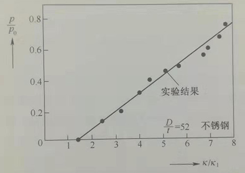 圖3-9~圖3-11所示為德國斯圖加特大學研究結果。其中:△D為截面直徑變化量,△D/D為管材截面直徑變化率;k為彎管的曲率,k/k1為歸一化的曲率,k1=t/d2;P為管材內壓,Po/P為歸一化的內壓,Po/P=2σot/Do。
