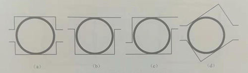 (a)中間分模;(b)上側分模;(c)上下對角分模;(d)中間對角分模。