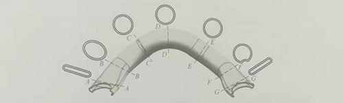 鋁合金副車架內高壓成形件壁厚分布對使用性能有著重要的影響。彎曲工序的壁厚分布是影響最終內高壓成形工序壁厚分布的主要因素,如果彎曲件壁厚減薄嚴重,很容易導致開裂缺陷。