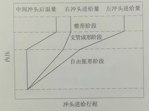 三通管內(nèi)高壓成形過程中,不同成形階段內(nèi)壓與沖頭進給行程至關(guān)重要。