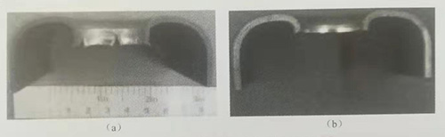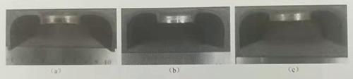 由于沖頭形狀改變了翻邊孔材料流動(dòng)形式,不同形狀沖頭翻邊孔質(zhì)量不同。圖7-39為不同沖頭形狀時(shí)的翻邊孔剖面照片,工藝條件分別為內(nèi)壓80MPa,孔徑20mm,翻邊系數(shù)0.6。