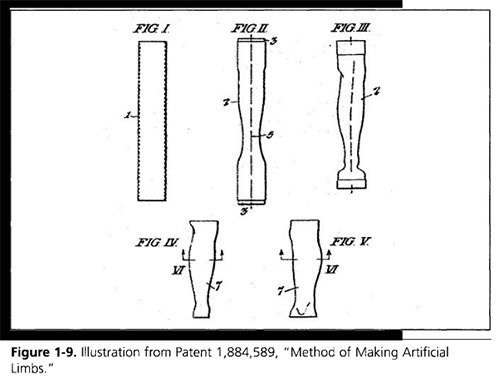 類似的技術目前也被用于制造管道設備,如圖1-5所示另一個有趣的專利,圖1-9(Davies?1932),描述了用鋁管制作假肢(胳膊和腿)的過程。