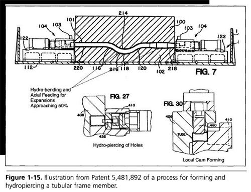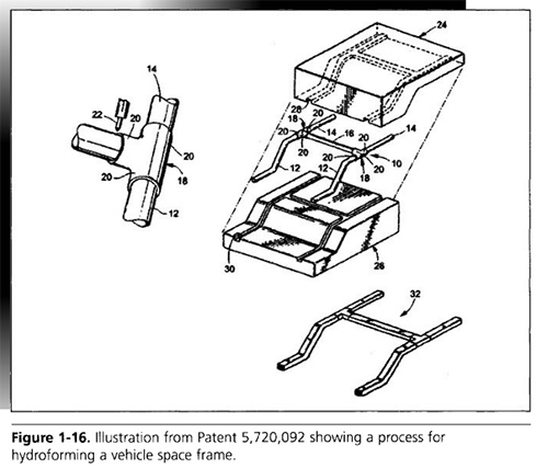 圖1-16專利5720092中的說明,展示了飛行器空間框架的液壓成形。