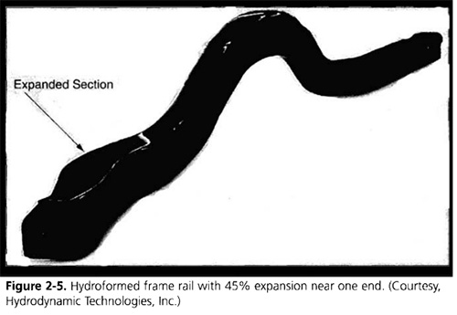 在脹形過程中,相當(dāng)長的管子被推入模腔。一般來說,這樣做是為了在長液壓成形構(gòu)件末端附近獲得更高的膨脹率,如圖2-5所示。