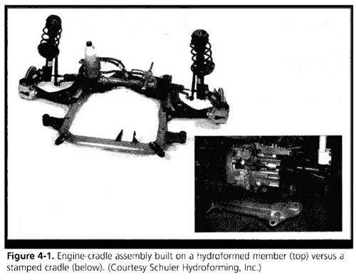 發動機托架是支撐汽車的發動機、懸架和轉向的部件。圖4-1所示的發動機支架組件說明了管狀內高壓成形的所有優點。