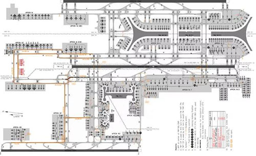 北京首都機場的滑行道與停機位示意圖,在這樣的大型復雜機場中滑行并不是一件容易的事情。