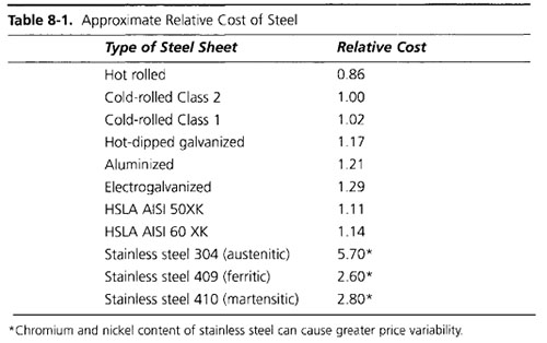 各種等級的銅管用于管道工業,不同等級鋼的相對成本比較如下,見表8-1(1996年汽車用鋼設計手冊)。