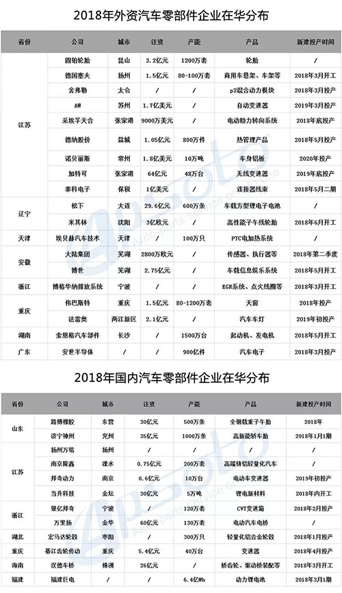 面對中國這個龐大的汽車銷售市場,許多整車企業和汽車零部件企業都競相來到這里建廠,很多大咖們甚至籌謀已久,不惜耗重資擴大企業規模,開拓新的市場。自進入2018年以來,汽車零部件企業的布局涵蓋范圍之廣也讓人瞠目結舌。