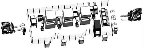 圖?1???典型工業機器人沖壓應用布局方案