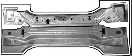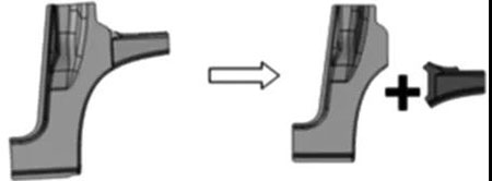 (8) 模具設計時盡量考慮一模雙件,也可以考慮不同零件合 用一套模具生產: 如國外某款車型后圍板和后鎖板( 圖 3) ,可以節 省兩件連接部分的拉延邊,提高材料利用率。