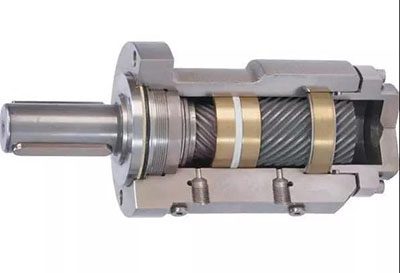 擺動式液壓缸是輸出扭矩并實現(xiàn)往復(fù)運動的執(zhí)行元件,有單葉片、雙葉片、螺旋擺動等幾種形式。葉片式式:定子塊固定在缸體上,而葉片和轉(zhuǎn)子連接在一起。根據(jù)進(jìn)油方向,葉片將帶動轉(zhuǎn)子作往復(fù)擺動。螺旋擺動式又分單螺旋擺動和雙螺旋兩種,現(xiàn)在雙螺旋比較常用,靠兩個螺旋副降液壓缸內(nèi)活塞的直線運動轉(zhuǎn)變?yōu)橹本€運動與自轉(zhuǎn)運動的復(fù)合運動,從而實現(xiàn)擺動運動。