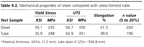 管壁系數為88的典型拉伸試驗結果如表9-2所示。注:板材和管材的機械性能變化很小