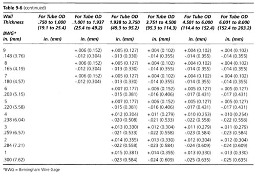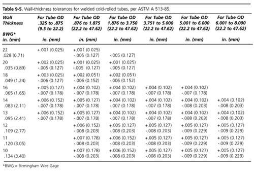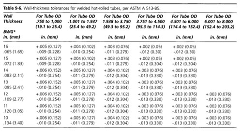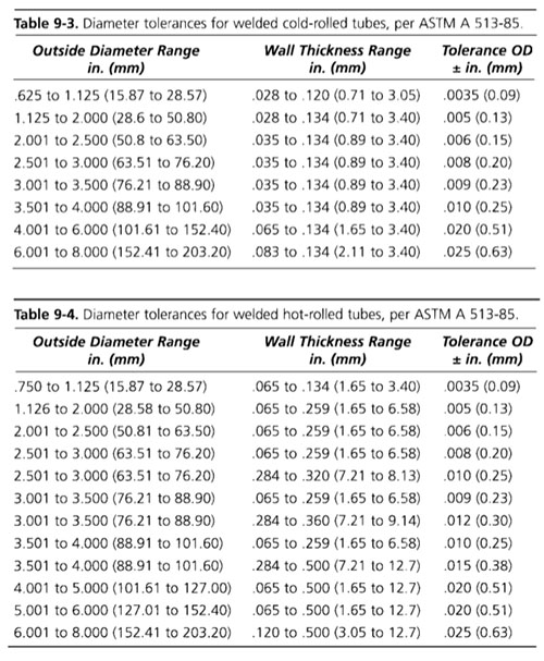 對于由熱軋和冷軋鋼制成的管到ASTM?A513規格(鋼管學會1994),外徑和厚度公差在表9~3至9~6之間。大多數供應管非常接近公稱尺寸的管OD和厚度,并有足夠的液壓成形過程。