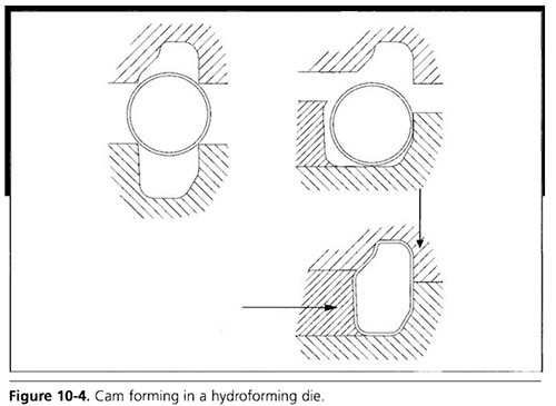 如果需要更多的預成形,應考慮在液壓成形工具中包含凸輪傳動部分,如圖10-4所示。