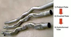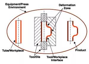 同時施加內壓和軸向進給,使管狀毛坯形成模具形狀。管材的性能和成形性決定了最終零件在現有工藝條件下能否成形。