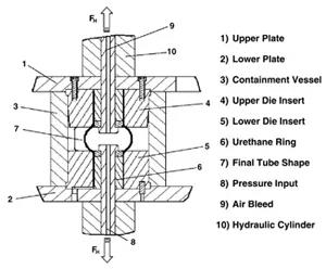 在這個試驗中,管材兩端被鎖住,并利用液壓內壓力,使管材根據實現自由拉伸的效果。