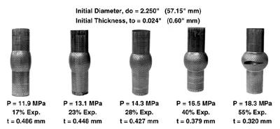 對于特定的管材和厚度,壓力和最大脹形直徑是在不同的壓力水平下測量的。該數據與專用計算機程序一起,以方程和應變函數的形式預測管道材料的流動應力。