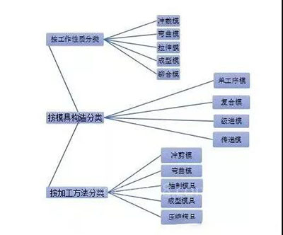 用通俗的話來(lái)講沖壓模具就是沖壓時(shí)使用的“模板”,一個(gè)模板只能沖壓出一種沖壓件,根據(jù)所要的沖壓件的不同尺寸、材料、形狀,需要選擇不同類型的沖壓模具,常見(jiàn)的沖壓模具分類如下: