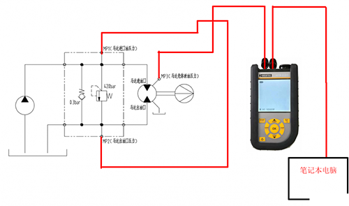 Webtec數字式液壓測試儀HPM4030是預防和診斷液壓故障的理想入門級產品,液壓工程師可以同時連接兩個和三個傳感器,顯示讀數、記錄數據和導出數據結果至HPMComm軟件,已進行進一步的分析。下面我們就以使用HPM4030對A2FM107液壓馬達(用于水泵驅動)的工作參數的在線測試為例,詳細說明HPM4030的使用方法。