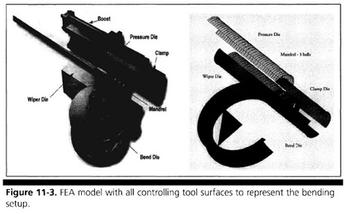 圖11-3所示為有限元分析模型,所有控制刀具表面均表示彎曲設置。
