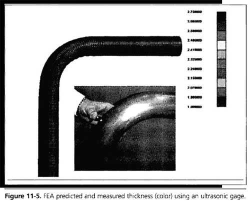從表11-1可以看出,預測的FEA厚度變化與實際測量值比較好。