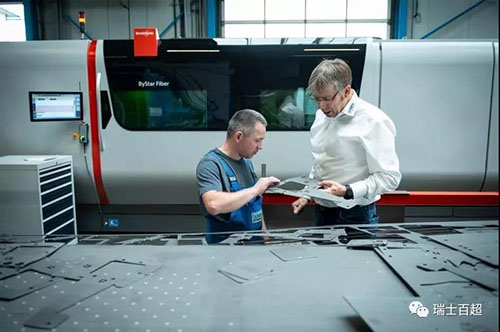 Bystronic百超北區(qū)銷售經(jīng)理J?rg?Zechel?(左側(cè))?說:“這個由激光切割系統(tǒng)、自動化系統(tǒng)、軟件和服務構(gòu)成的整體解決方案是Bystronic百超與Langen?CNC?Metalltechnik通過密切的溝通交流實現(xiàn)的。這種整體套餐在市場上還從來沒有過。”