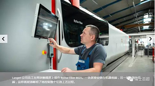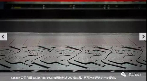 深色玻璃后方閃爍著綠色光線,一個激光切割頭正在前后左右移動。它精確靈巧地運動著,從一塊金屬板材上切割出輪廓。從二月份起,這臺ByStar?Fiber?8025就開始在公司服役?!拔覀兿胍慌_切割效率高并且能夠加工大尺寸板材的機器。我們要加工的金屬工件長度最大有8米,所以也希望能夠切割這個尺寸的工件”,Langen?CNC?Metalltechnik的總經(jīng)理Franz?Langen說。